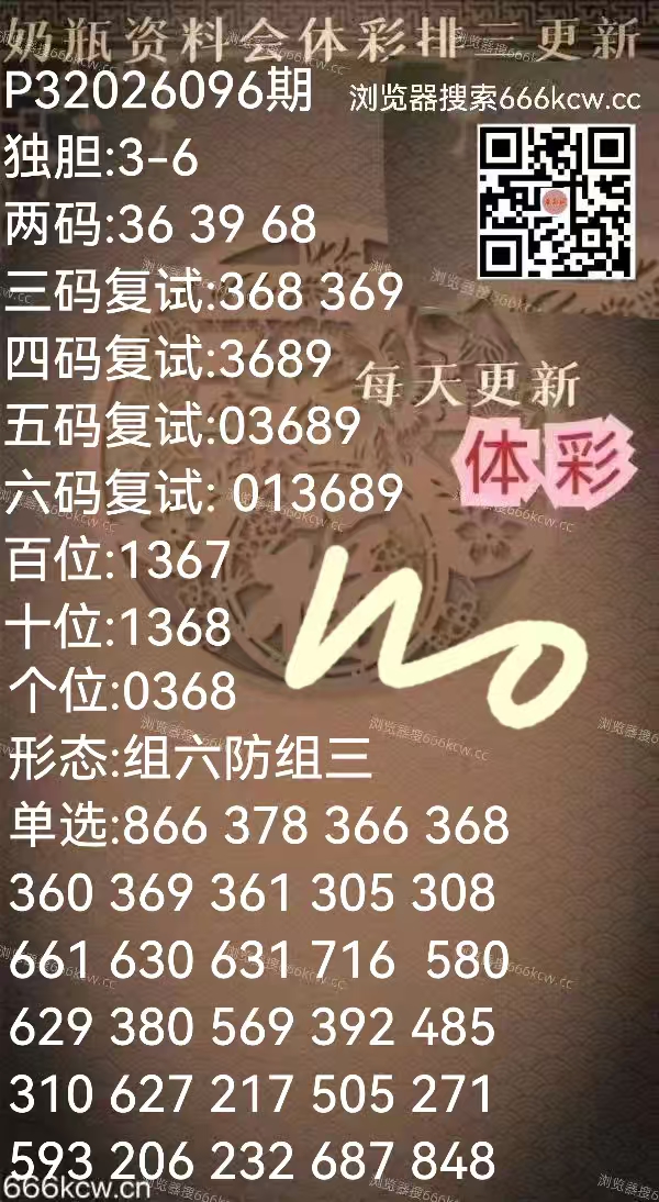 《奶瓶资料》体彩准独胆3-6,准两码36。